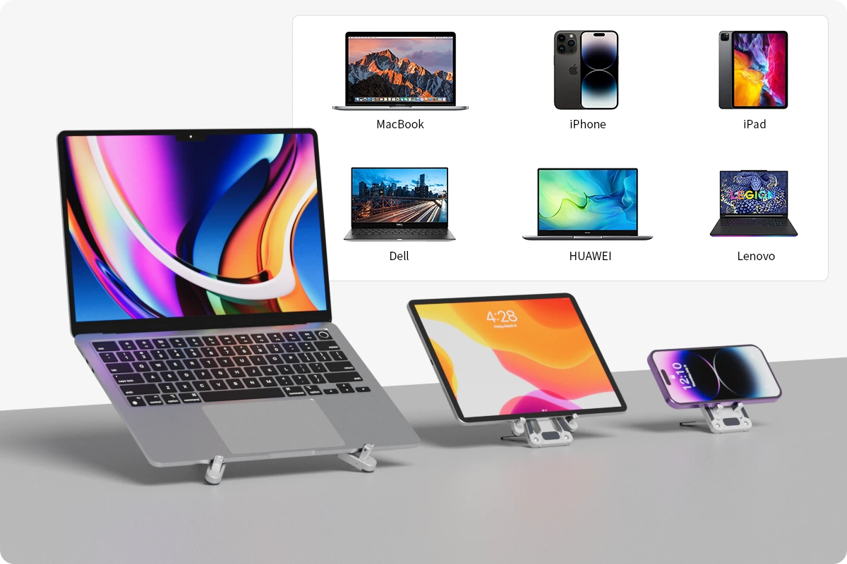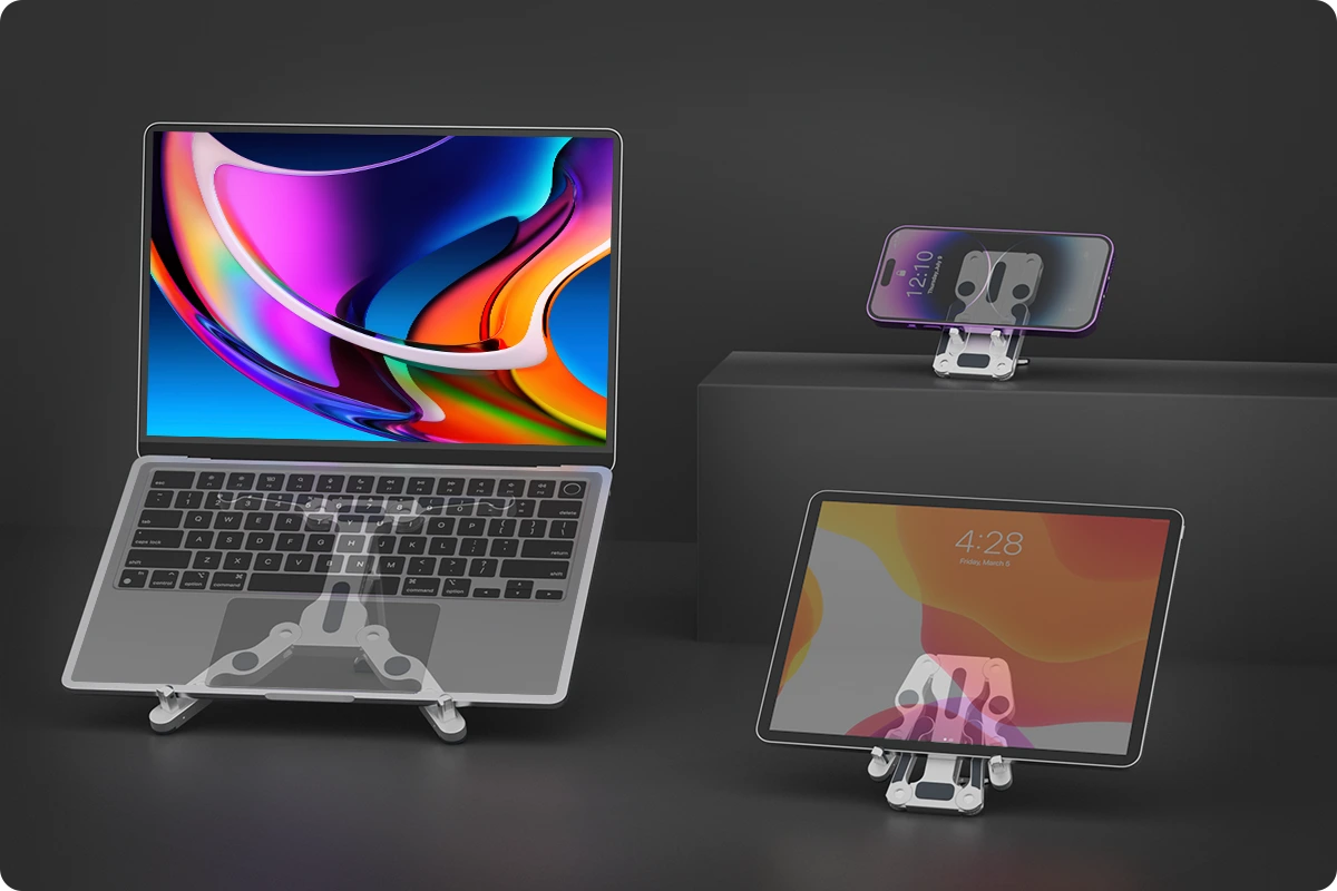 No tools, no fiddling—just flip it open and position your device. Whether it’s your laptop, tablet, or phone, the stand locks into place instantly, giving you a stable, ergonomic setup in under five seconds.