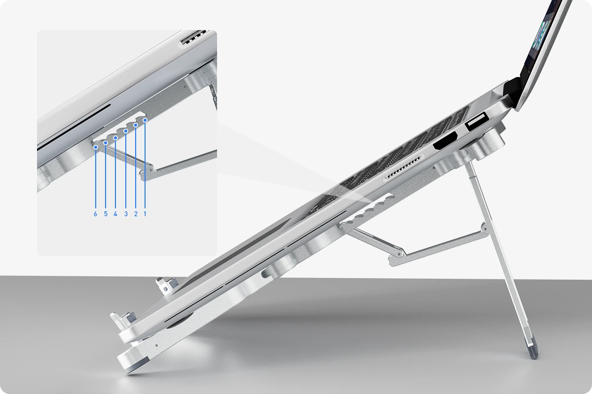 Reinforced alloy hinges and anti-slip silicone pads lock your laptop, tablet, or phone firmly in place, giving you wobble-free typing and worry-free video calls on any surface.